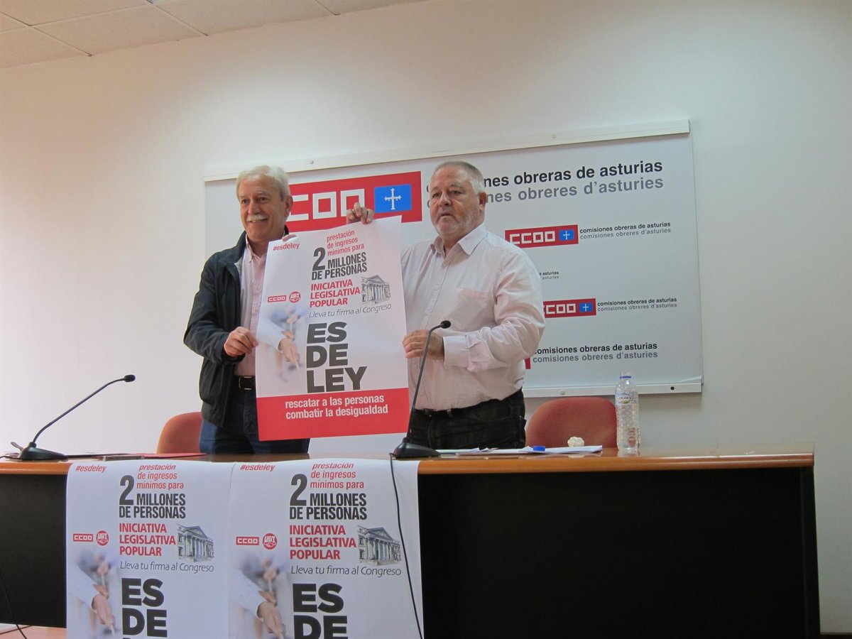 Los sindicatos UGT y CCOO han iniciado esta semana la campaña de recogida de firmas para promover, en el Congreso de los Diputados, una Iniciativa Legislativa Popular que permita proporcionar una prestación de ingresos mínimos para las personas que carecen de recursos. La propuesta, de carácter nacional, ha sido presentada este martes en rueda de prensa en Oviedo y para que salga adelante se necesita un mínimo de 500.000 firmas.