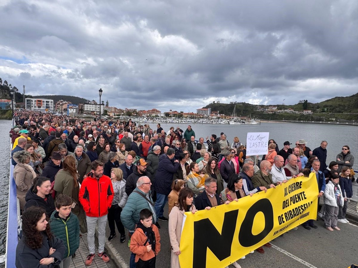 Centenares de personas han participado este domingo en una manifestación contra el cierre al tráfico rodado de Ribadesella durante 15 semanas, algo proyectado en el la actuación prevista en las obras de la infraestructura.