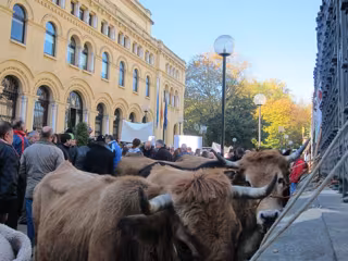 Asturcones, vacas y cabras han sido algunos de los animales que los ganaderos han trasladado hasta las inmediaciones de la sede de Presidencia y de la Junta general y que han llamado la atención de los viandantes. Y ese era el principal objetivo de los cientos de personas que se han manifestado acompañados de silbatos, cencerros y megáfonos, llamar la atención sobre la situación del sector.