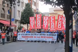 La cabecera de la manifestación ha transcurrido tras una pancarta con el lema 'Por el futuro del sector de defensa en Asturias. Readmisión de los despedidos'. La movilización ha sido convocada por las federaciones de CCOO de Industria de Asturias y MCA UGT. Los sindicalistas asturianos han tenido el respaldo de unos cien compañeros de A Coruña, donde en una planta de la misma empresa se ha despedido a 61 operarios.