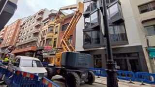 Durante la jornada de este jueves se encuentran trabajando en el edificio operarios enviados por los propietarios del inmueble, que actuaron a instancias del Ayuntamiento de Oviedo tras la llamada de alerta de los vecinos de un edificio colindante.