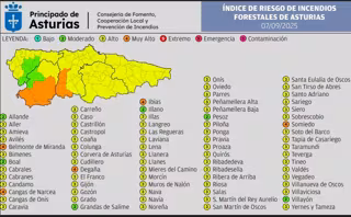 El resto de concejos están calificados en riesgo 'alto', mientras que solo seis concejos se encuentran en riesgo 'moderado', por lo que desde el Gobierno del Principado recomiendan mucha precaución y seguir las indicaciones de emergencia y evitar cualquier práctica de riesgo en zonas forestales durante los próximos días.