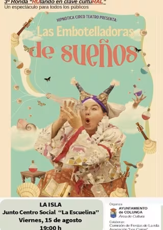 La localidad de La Isla acoge este viernes el espectáculo de circo-teatro Las embotelladoras de sueños, a cargo de la compañía Hipnótica Circo-Teatro. La cita tendrá lugar a las 19.00 horas junto al Centro Social 'La Escuelina' y está dirigida a todos los públicos.