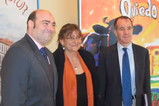 Junto a Caunedo, han presentado a los medios la Feria el director de la Sociedad Ovetense de Festejos, Javier Batalla, y la presidenta de la asociación Mercau Astur, Consuelo Riu García.