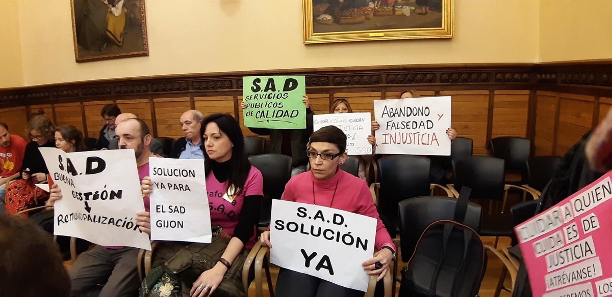 Protesta de trabajadoras del Servicio de Ayuda a Domicilio en el Pleno Municipal de Gijón, el pasado mes de febrero - EUROPA PRESS - Archivo