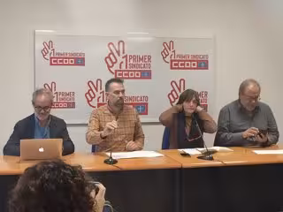 Cofiño ha comparecido ante los medios, junto con el secretario general de CCOO de Asturias, la secretaria general de FSC CCOO de Asturias, Luz García, y el representante de la sección sindical de CCOO en prisiones, José María López.