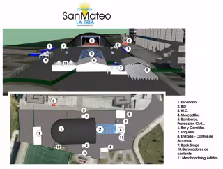 Además de la carpa las instalaciones se completan con tres bares para la venta de bebidas, otro de comida rápida, en el que también se servirán bebidas y otra de 'merchandising' de los artistas, además de los camerinos y el 'back stage', servicios y un área en el que estará presenten los servicios de seguridad, bomberos y protección civil.