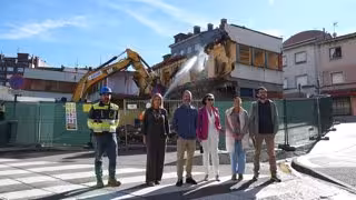 El alcalde de Siero, Ángel García, y la concejala de Educación, Juventud e Igualdad, Eva Iglesias, han visitado este jueves el inicio de las obras de demolición del edificio de la antigua Escuela de Adultos de Pola de Siero.