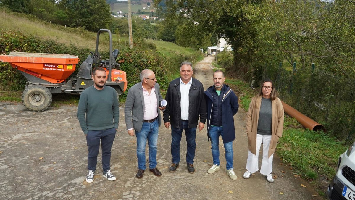 Rubén Montes, de la empresa adjudicataria; Juan Carlos Álvarez, ingeniero municipal; el concejal, el alcalde y la ingeniera municipal, Leire Gabilondo. - AYUNTAMIENTO DE SIERO