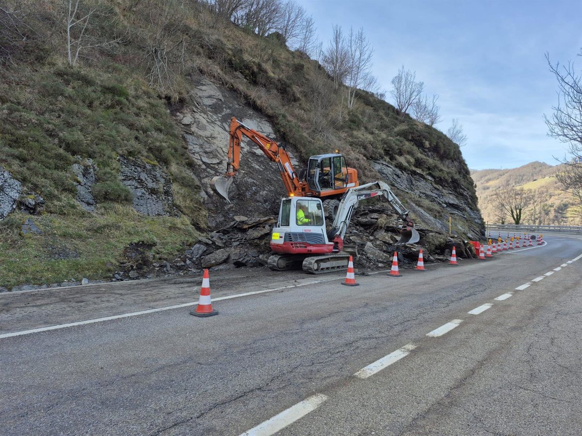 La carretera está operativa con un carril habilitado con semáforo después de que este domingo, en torno a las 11.30 horas, se produjera un argayo que cortó la vía.