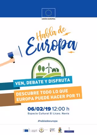 El Espacio Cultural El Liceo de Navia acogerá este próximo miércoles, 6 de febrero, el evento 'Habla de Europa', una iniciativa de la Comisión Europea para acercar Europa a las zonas rurales.