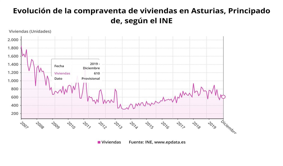 Evolución de la compraventa de viviendas en el Principado de Asturias hasta 2019. - EPDATA