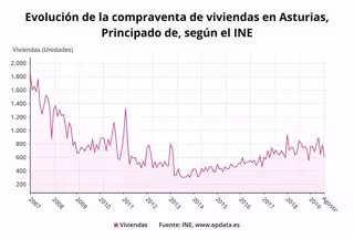 La compraventa de viviendas ha descendido un 25,8 por ciento en el Principado de Asturias a lo largo del mes de agosto en comparación con el mismo mes del pasado año, según ha publicado este jueves el Instituto Nacional de Estadística (INE). En total, se han realizado 606 operaciones.