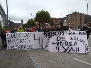 Algunos de esos compañeros han aprovechado este mismo miércoles la presencia en Mieres de los máximos responsables de CCOO y UGT, Unai Sordo y Pepe Álvarez respectivamente, para dar visibilidad a la protesta de los cuatro subcontratados, exhibiendo dos pancartas frente al edificio donde se celebraba el acto en el que iban a participar los sindicalistas.