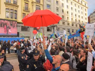 También se escucharon gritos como 'Manos arriba, esto es un atraco', 'Que no nos representan', 'Vergüenza', 'Fartones' o 'España mañana será republicana'. También se pudieron ver ondeando numerosas banderas republicanas de España, así como pancartas de otros colectivos, como los trabajadores de la entidad bancaria Cajastur.
