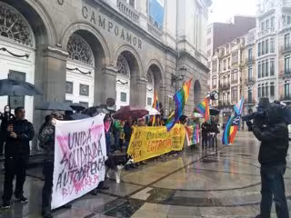 Los participantes se reunieron frente al Teatro Campoamor con pancartas con lemas como 'El machismo también nos mata', 'Stop homofobia, transfobia y bifobia' y 'Unidad, solidaridad y autodefensa'.