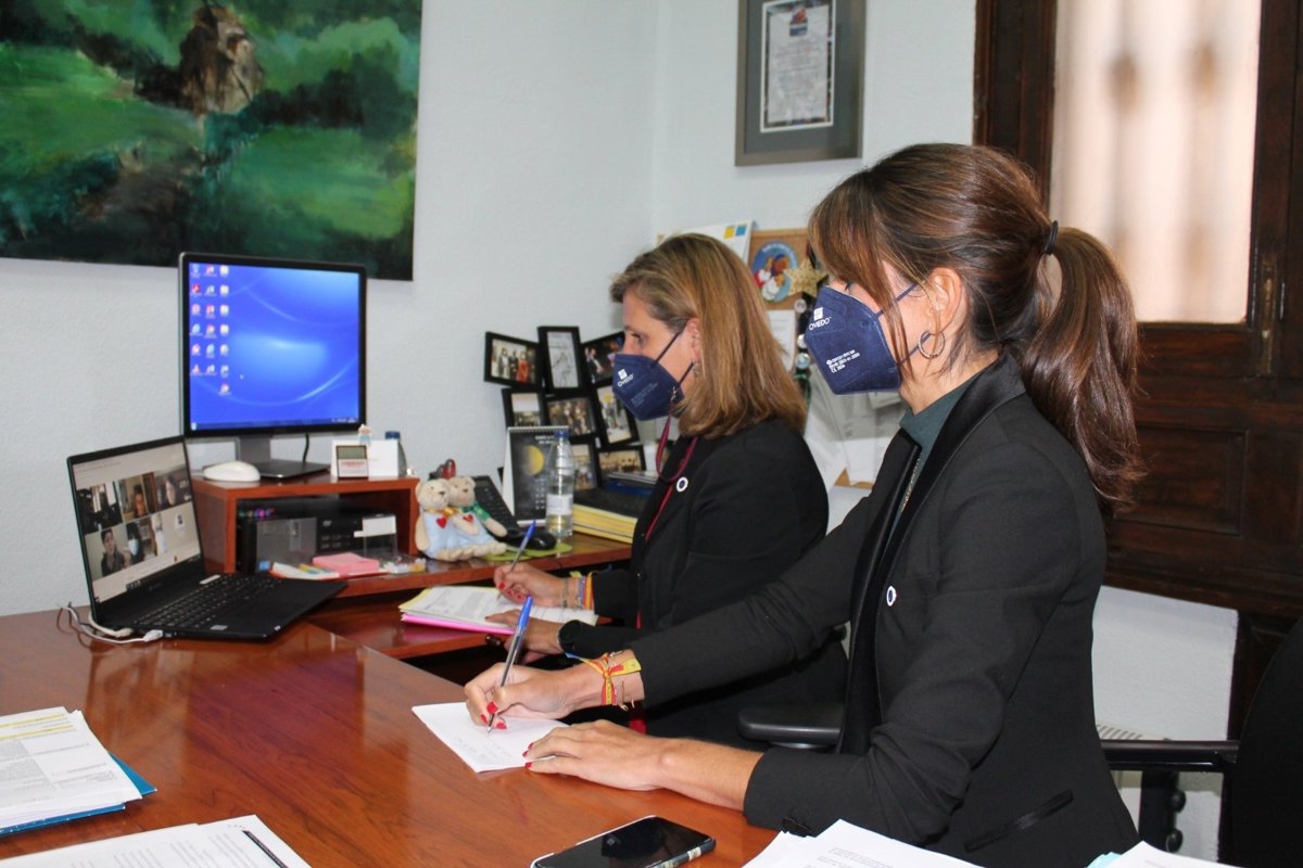 Las Concejalas de Gobierno y delegada de Políticas Sociales del Ayuntamiento de Oviedo, Concepción Méndez y Leticia González respectivamente, se han reunido este miércoles de forma telemática con representantes de diversas entidades que habían solicitado una entrevista para plantear sus iniciativas en materia de vivienda. Por parte de la asociación han estado presentes en la reunión Evelia Cantera, Candela Herrera, Pilar Lobo, Nazaret Sánchez y María Dolores Riesgo.