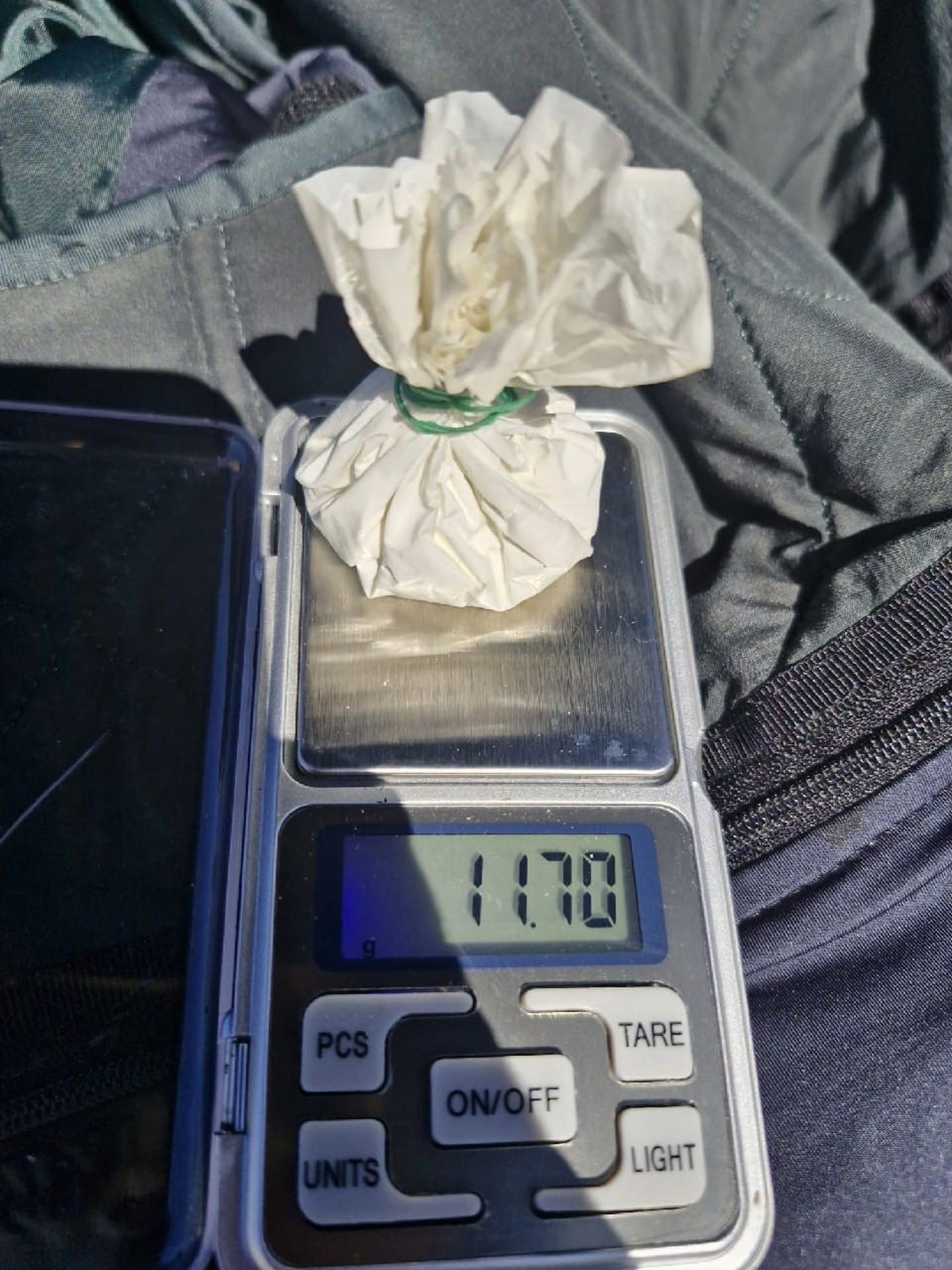 Tras detener el turismo en una zona segura, se procedió a identificar a los ocupantes y realizar un registro superficial del interior del vehículo. Bajo la moqueta de una guantera lateral, los agentes hallaron una bolsa de pequeñas dimensiones con una sustancia blanquecina que, tras el test de drogas, resultó ser positiva a compuestos anfetamínicos.