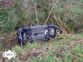 El Centro de Coordinación de Emergencias del 112 Asturias recibió el aviso a las 13.50 horas. En la llamada señalaban que un vehículo se había salido de la vía y había caído por un desnivel de unos cuatro metros.