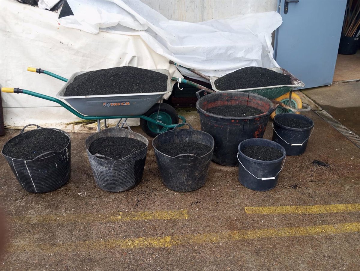 Asimismo, tras la inspección desde el área de Medio Ambiente, se procedió a la retirada de aproximadamente cuatro toneladas de caucho acumulado en las inmediaciones del Jardín Botánico.
