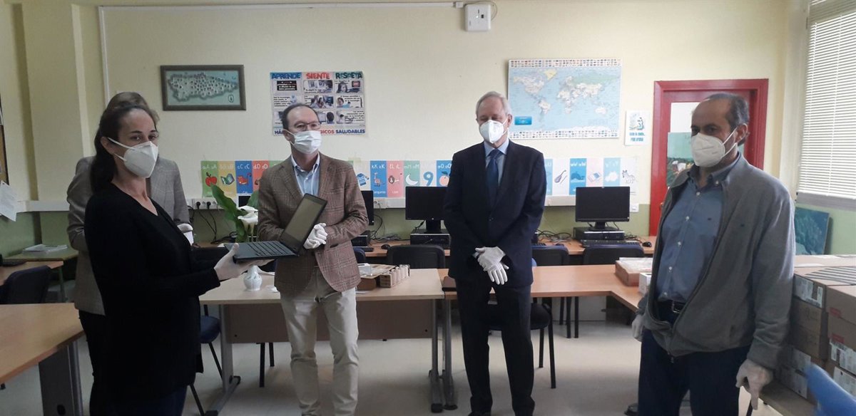 La Consejería de Educación y la Fundación Edp han repartido este martes en el Colegio Público Pablo Iglesias, de Soto de Ribera, 39 de los 460 ordenadores portátiles nuevos que la entidad ha donado para facilitar el seguimiento de la actividad docente al alumnado afectado por la brecha digital.