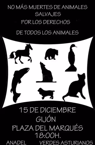 Las asociaciones Anadel y Verdes Asturianos han convocado una protesta para este sábado día 15 para reivindicar los derechos de los animales que tendrá lugar en Gijón, en la Plaza del Marqués, a partir de las 18.00 horas.