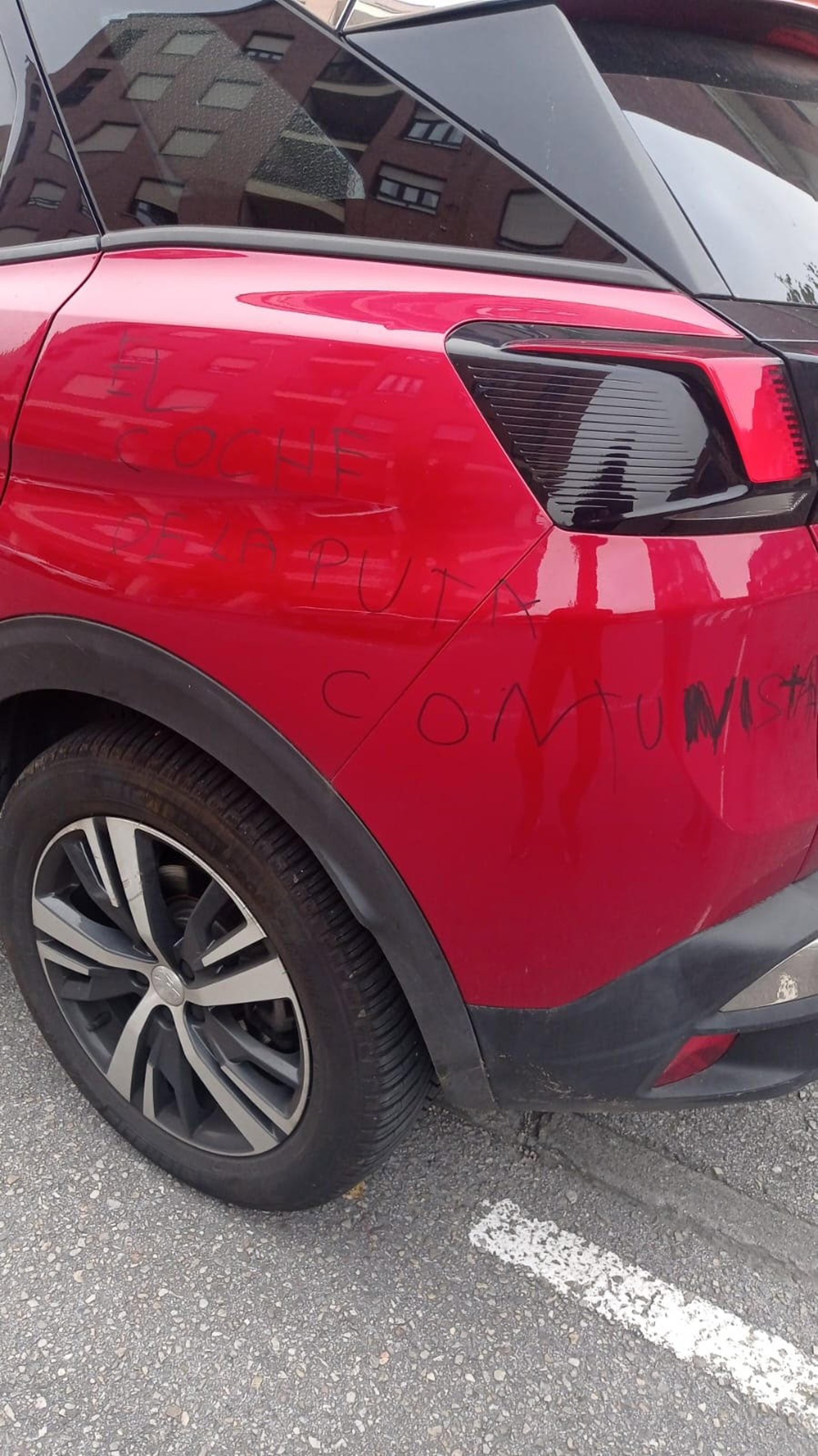 Convocatoria por San Martín del Rey Aurelio-Convocatoria por Asturias han denunciado este jueves las pintadas vandálicas en el coche de la candidata a la Alcaldía en ese concejo, Esther Cepedal. 'El coche de la puta comunista', reza grafiti, hallado en la mañana de hoy en el vehículo, que estaba estacionado en la calle.