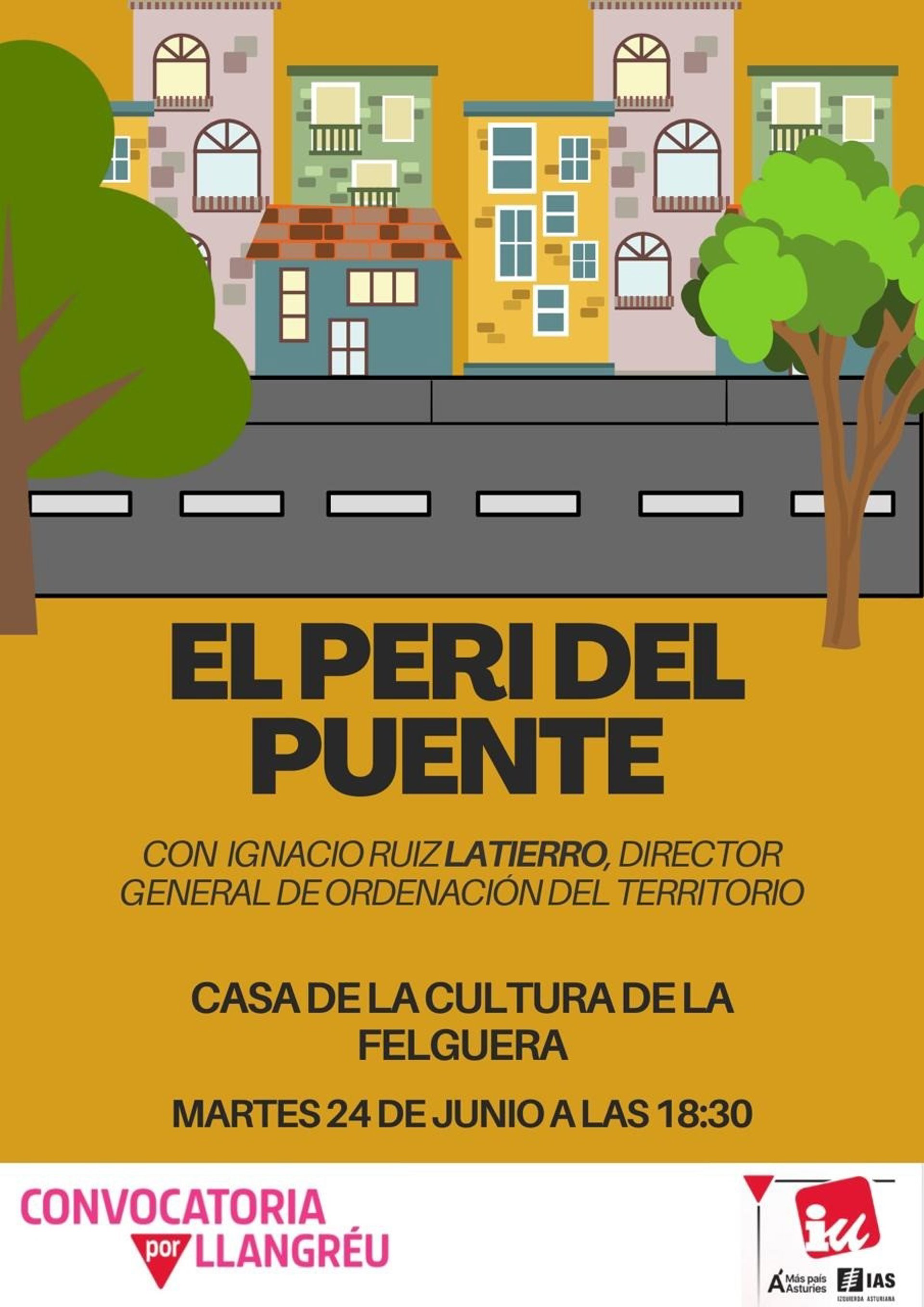 Convocatoria por Langreo-IU ha convocado una asamblea abierta el próximo martes 24 de junio, a las 18.30 horas, en la Casa de Cultura de La Felguera, con el objetivo de informar sobre la situación del planeamiento urbanístico del barrio de El Puente y los planes de futuro para la zona.