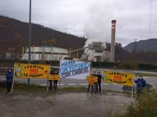 Pancartas frente a la central térmica de La Pereda, en Mieres. - COORDINADORA ECOLOGISTA