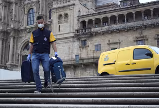Trabajador de Correos portando mochilas de peregrinos del Camino de Santiago. - CORREOS
