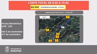 La Consejería de Movilidad, Medio Ambiente y Gestión de Emergencias del Principado de Asturias ha procedido al corte total de tráfico en un tramo de la carretera AS-342, que permanecerá cerrado desde hoy hasta el viernes 7, en horario de 08.45 a 15.45 horas.
