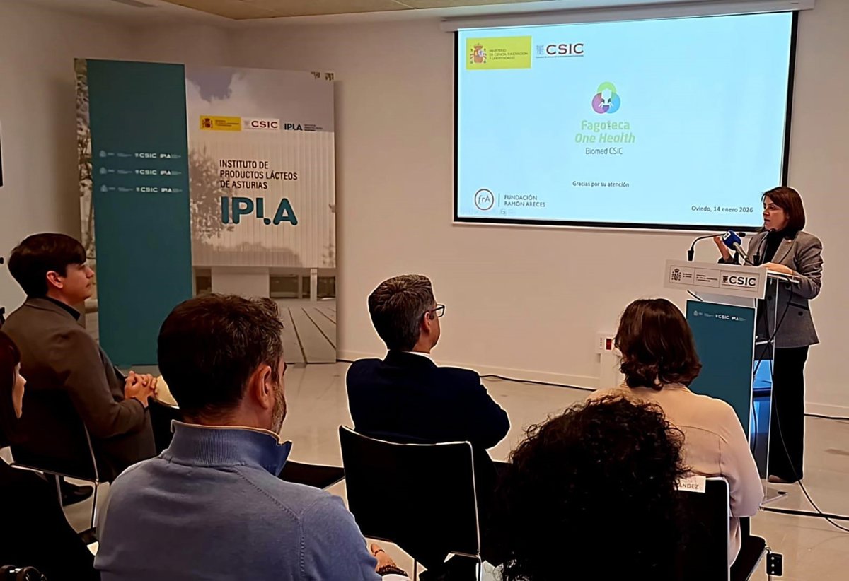 El Consejo Superior de Investigaciones Científicas (CSIC), entidad adscrita al Ministerio de Ciencia, Innovación y Universidades, ha presentado este miércoles en Oviedo la Fagoteca One Health un recurso que cuenta con un repositorio de fagos, que prestará también servicios de diseño de fagos con aplicaciones en salud humana y animal, agroalimentación y medioambiente.
