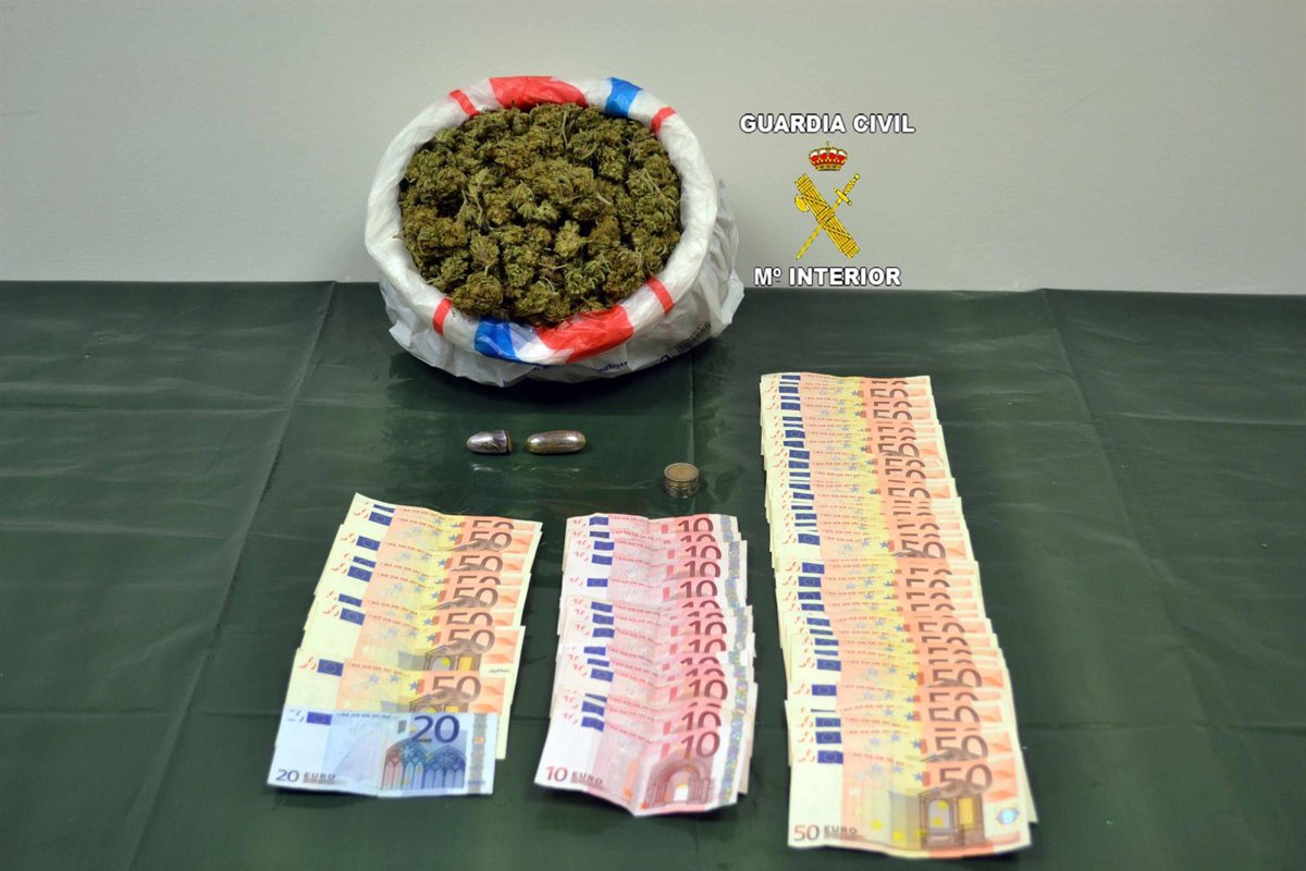 En el maletero del vehículo la Guardia Civil encontró una bolsa de plástico térmica cerrada, en cuyo interior fueron localizados un total de 630 gramos de marihuana en cogollos secos, listos para su distribución.