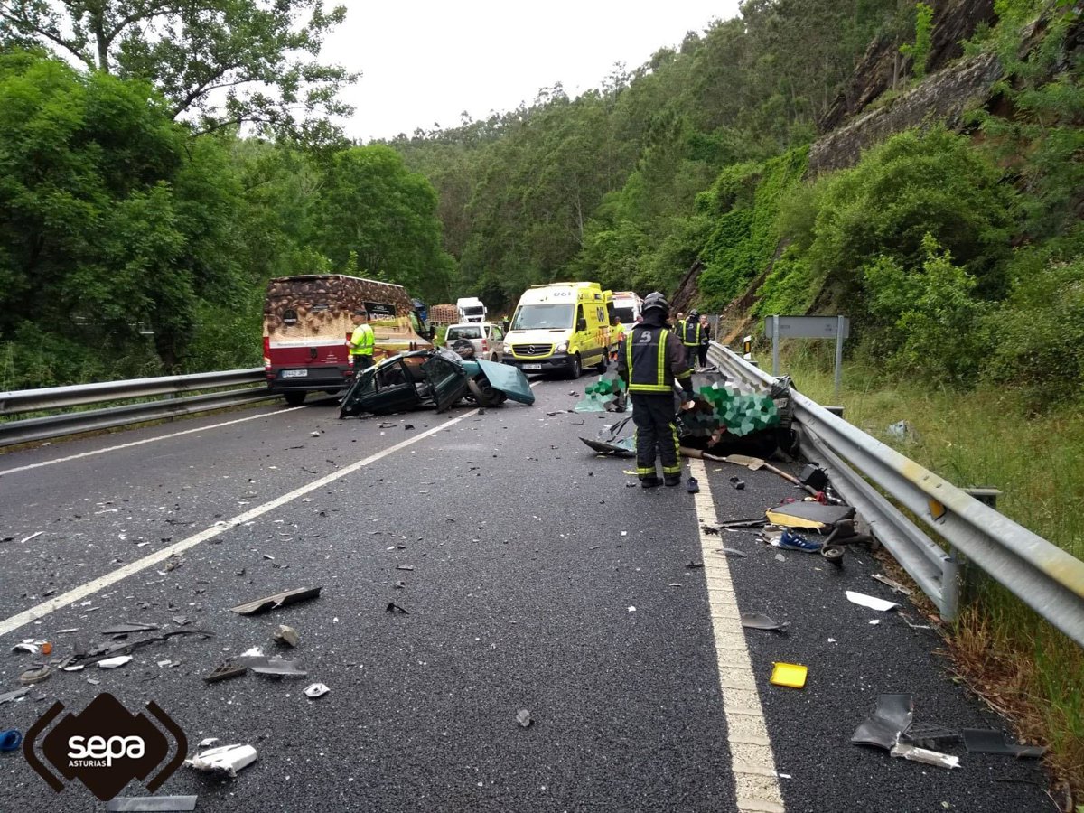La del viernes, día 15 de junio, fue la jornada más dura porque en esa tarde se registraron los cuatro fallecimientos en vías del occidente asturiano. Ese día hubo 21 accidentes. En uno de ellos fallecieron tres personas al colisionar un coche y un camión en la N-640, en San Tirso de Abres.