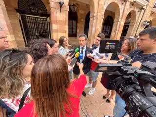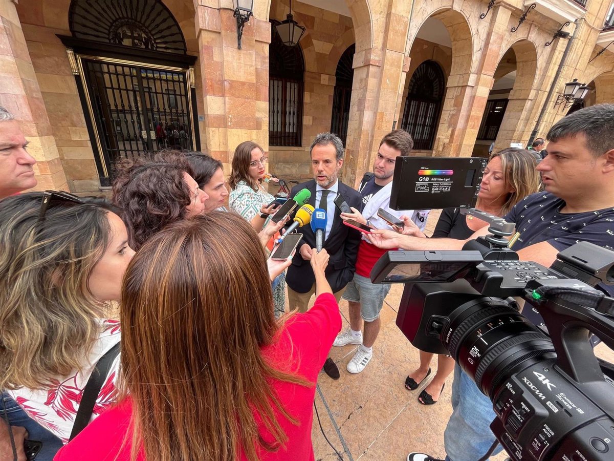 Ignacio Cuesta atiende a los medios de comunicación ante el Ayuntamiento de Oviedo. - EUROPA PRESS