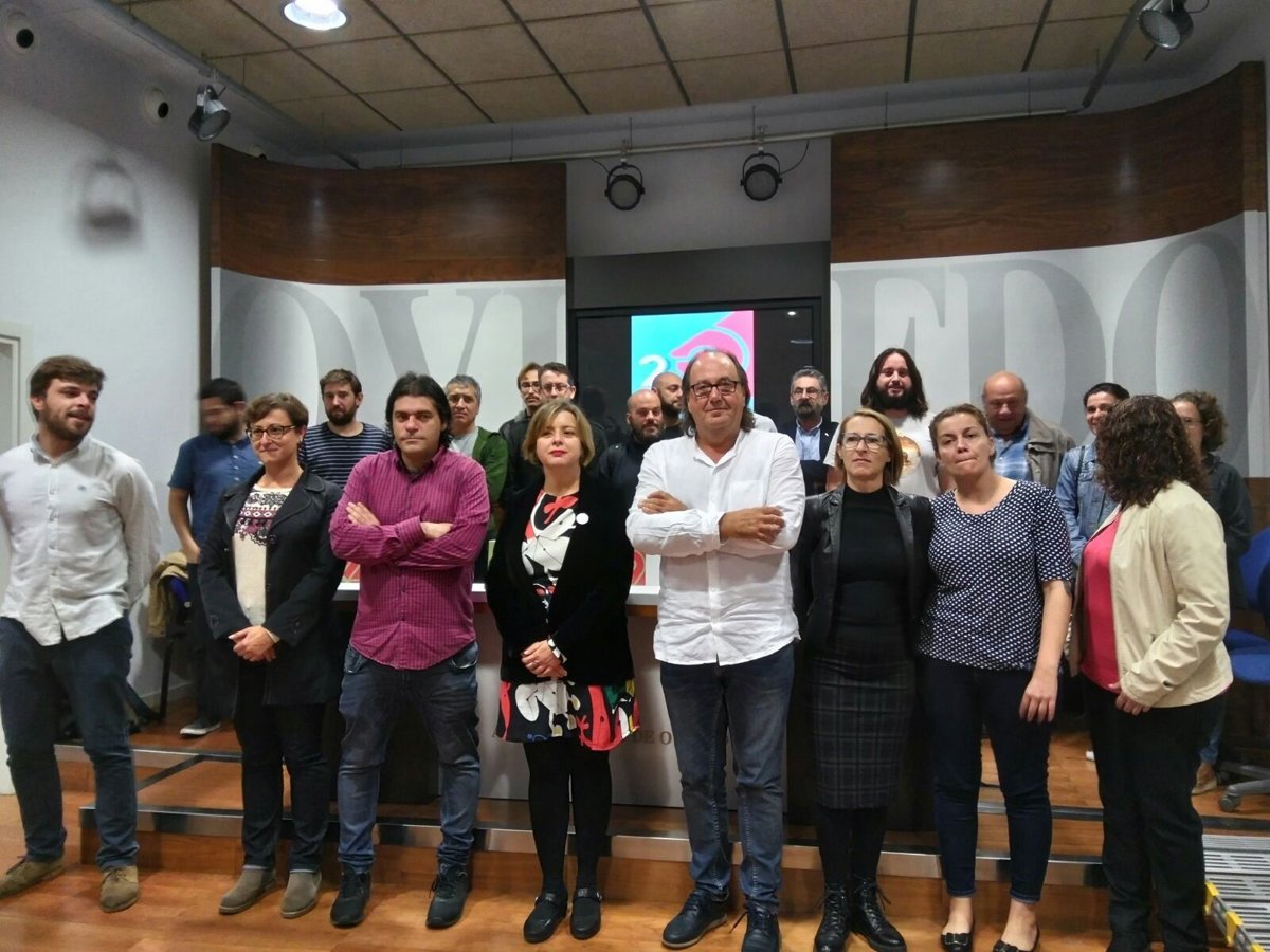 Se han dado cita en la sala de prensa del Ayuntamiento de Oviedo representantes de las CUP con presencia en 20 corporaciones locales asturianas para reivindicar su papel como impulsoras de un "municipalismo diferente" que busca hacer política "desde la gente".
