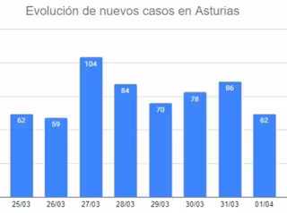 Evolución de nuevos casos de coronavirus en Asturias hasta el 1 de abril. - EUROPA PRESS