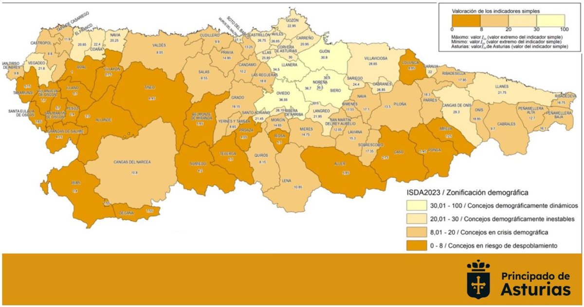 El núcleo de la normativa es Indicador Sintético de Estado Demográfico de Asturias (ISDA), una herramienta que evalúa y clasifica a los concejos en cuatro categorías. Para calcular este indicador, que se revisará cada dos años, se tienen en cuenta diez variables basadas en fuentes estadísticas públicas: densidad de población, índices de envejecimiento (mayores de 65 años) y de población infantil (hasta los 14 años), tasas de natalidad y mortalidad, masculinidad (proporción de hombres y mujeres de entre 15 y 49 años), flujos migratorios, tasa de empleo, crecimiento real y volumen total de población.