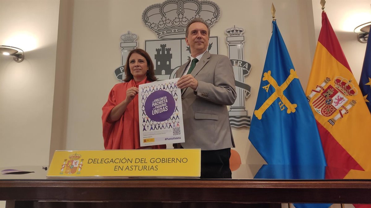 La delegada del Gobierno en Asturias, Adriana Lastra, y el presidente del Colegio de Farmacéuticos de Asturias, Alfredo Menéndez, han firmado este lunes el protocolo de colaboración para que las 454 farmacias que hay en Asturias puedan ser Puntos Violeta.