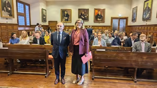 La presidenta del Instituto Nacional de Estadística, Elena Manzanera, y el rector de la Universidad de Oviedo, Ignacio Villaverde, en la reunión de delegados territoriales del INE que se celebra en Oviedo. - EUROPA PRESS
