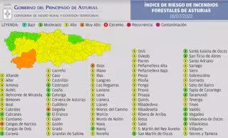 En concreto, el riesgo más elevado se espera en Cangas del Narcea, Degaña e Ibias. Mientras, el riesgo será 'Alto' prácticamente en el resto del territorio asturiano, a excepción de otros 16, en los que el riesgo será 'Moderado'.