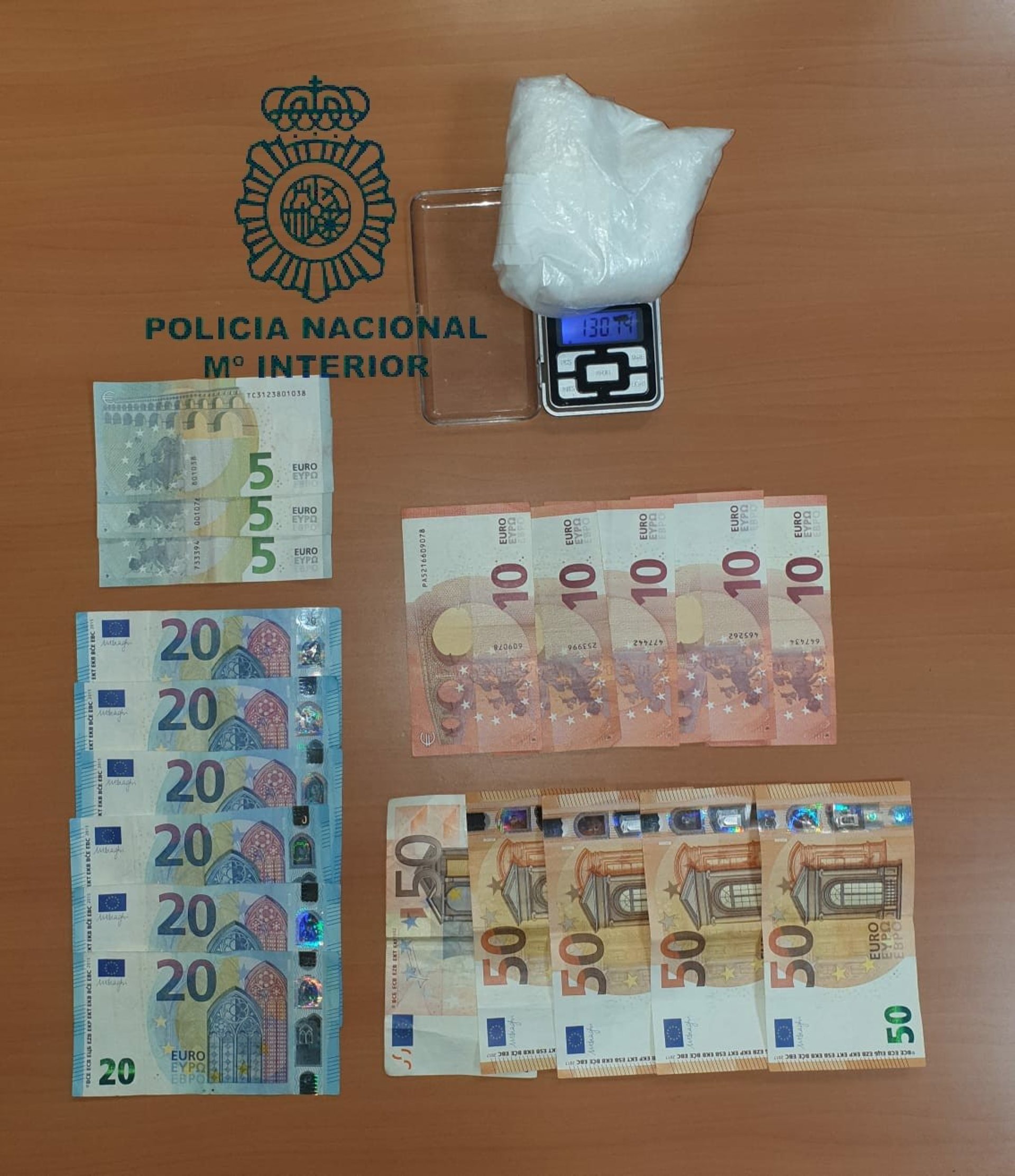 Tras darse cuenta de que han sido advertidos de su presencia, los agentes deciden actuar, logrando interceptar el coche que ya estaba abandonado el lugar, interviniendo al copiloto 130 gramos de una sustancia que resultó ser PCP, comúnmente conocida como 'polvo de ángel' y 400 euros en billetes pequeños.