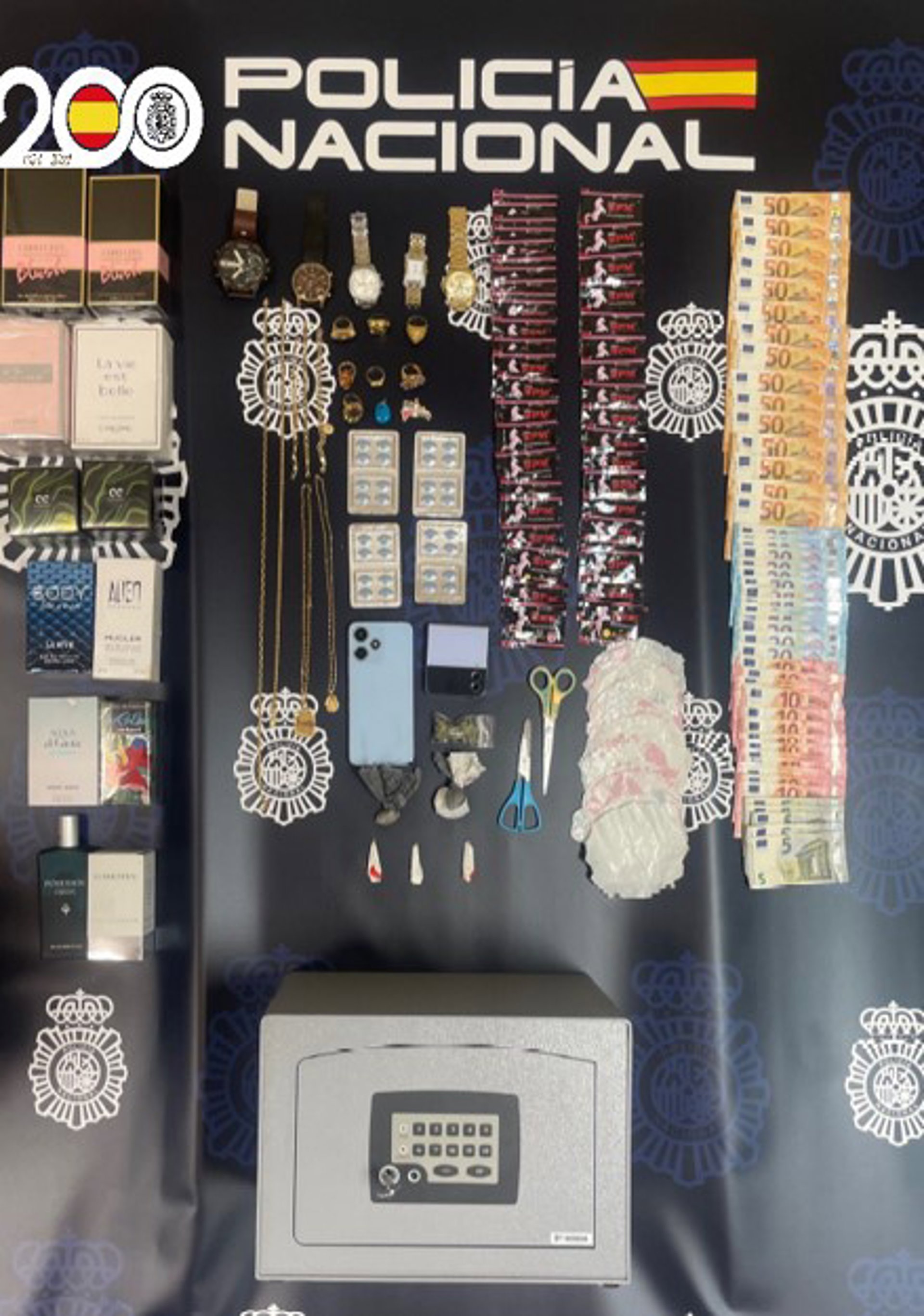 Entre los efectos incautados en el citado registro se encuentran: 43 pastillas y 118 dosis líquidas de fármacos potenciadores sexuales; joyas cuyo valor se estima en 22.000 euros y numerosos productos cosméticos y de perfumería, de los que se presume provienen de hurtos y fueron receptados a cambio de dosis de droga.