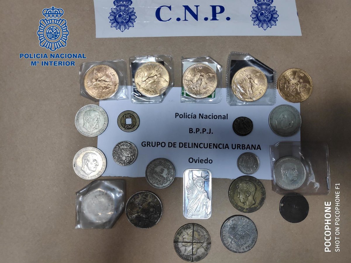 Los funcionarios del Grupo de Delincuencia Urbana averiguaron que las monedas de oro pertenecían a un empresario de Oviedo, que había mantenido una relación durante varios años con la mujer que realizó la venta de dichas monedas.
