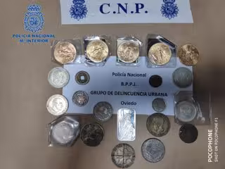 La Policía Nacional ha detenido en Oviedo este domingo, día 14 de abril, a una mujer, A.S.M.M., como autora de un hurto de 41 monedas de oro y diversas joyas valoradas en más de 100.000 euros, además de 29.000 euros en efectivo.