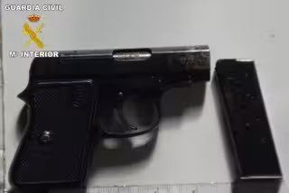 En el momento de la detención, el detenido portaba una navaja de 21 centímetros de largo y con una hoja de 10 centímetros, una pistola de procedencia extranjera de calibre 6.35 mm, con unas dimensiones de 13 centímetros de largo por nueve de alto y cinco balas de ese mismo calibre. Estas fueron depositadas en la Intervención de Armas de Sama de Langreo a la espera de ser remitidas al Servicio de Criminalística-Balística de la Guardia Civil para su posterior estudio. El detenido fue puesto a disposición del Juzgado de Guardia de Laviana.