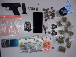 Además, dentro de una nevera-arcón estaba oculta una báscula de precisión digital y debajo de la cafetera, una pistola detonadora con cargador y munición del calibre 22.