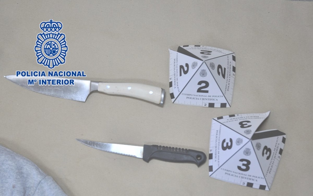 En esta ocasión, el detenido, tras marcharse del local, regresó minutos después portando las dos armas blancas "con la clara intención de arremeter con ellas a la víctima", según la Policía.