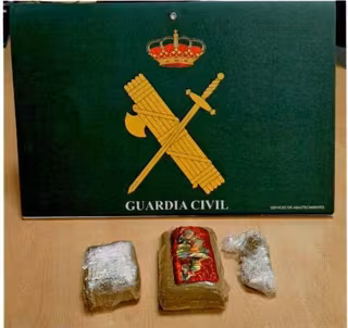 En el registro de sus pertenencias, los guardias civiles localizaron en una mochila tres paquetes compactos de una sustancia marrón que, tras realizar el correspondiente test de detección, dio positivo en hachís. La sustancia, que pesaba 160 gramos, estaba distribuida en tres paquetes envueltos en plástico film.