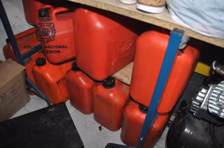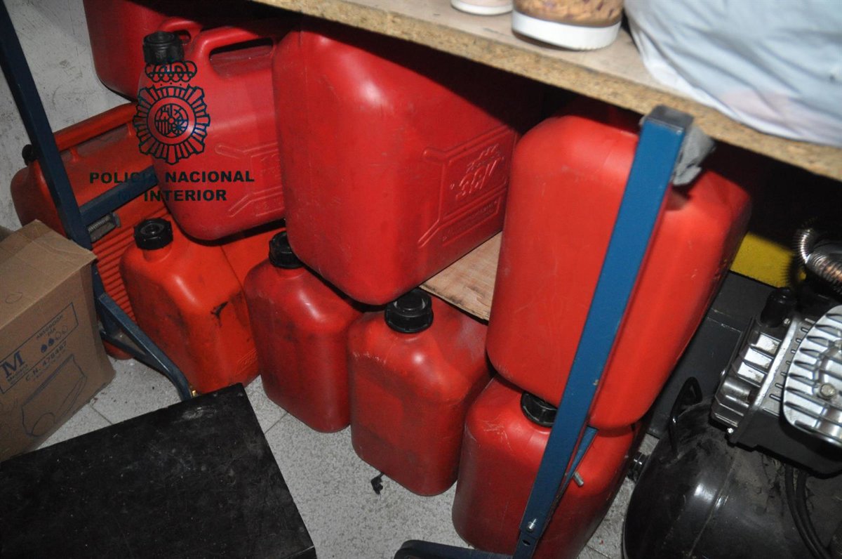 Tras realizar un registro en el trastero de su domicilio, la policía intervino 120 litros de combustible, que guardaba en seis garrafas, con el consiguiente riesgo para la comunidad, teniendo la hipótesis de que pudieran haber sido muchos más los litros almacenados en su momento ya que en total hallaron 19 garrafas con capacidad para 340 litros. El detenido, muy metódico en sus actos, poseía cierta habilidad y conocimientos mecánicos.